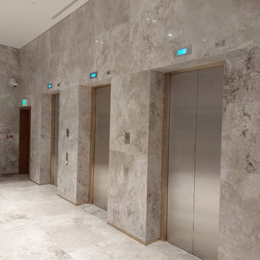 Over 3000 m² Porcelain Works and 2000 m² Travertine Wall Cladding.